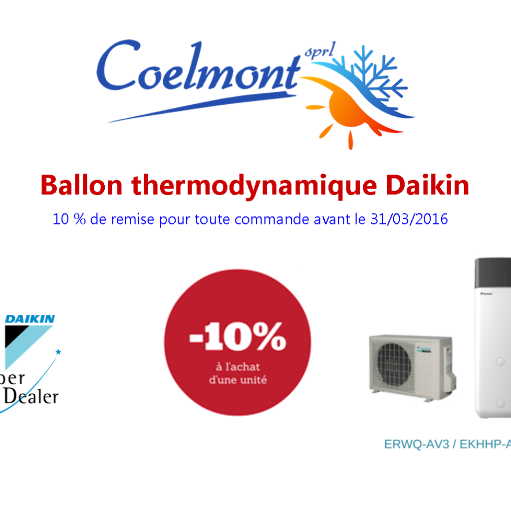 Commandez votre boiler thermodynamique Daikin avant le 31/03/2016 et recevez 10 % de remise