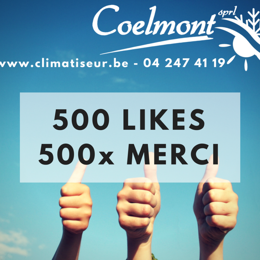 Grâce à vous, la Coelmont SPRL compte désormais plus de 500 personnes qui suivent sa page Facebook. Alors, un grand merci à tous et continuez à faire parler de nous!